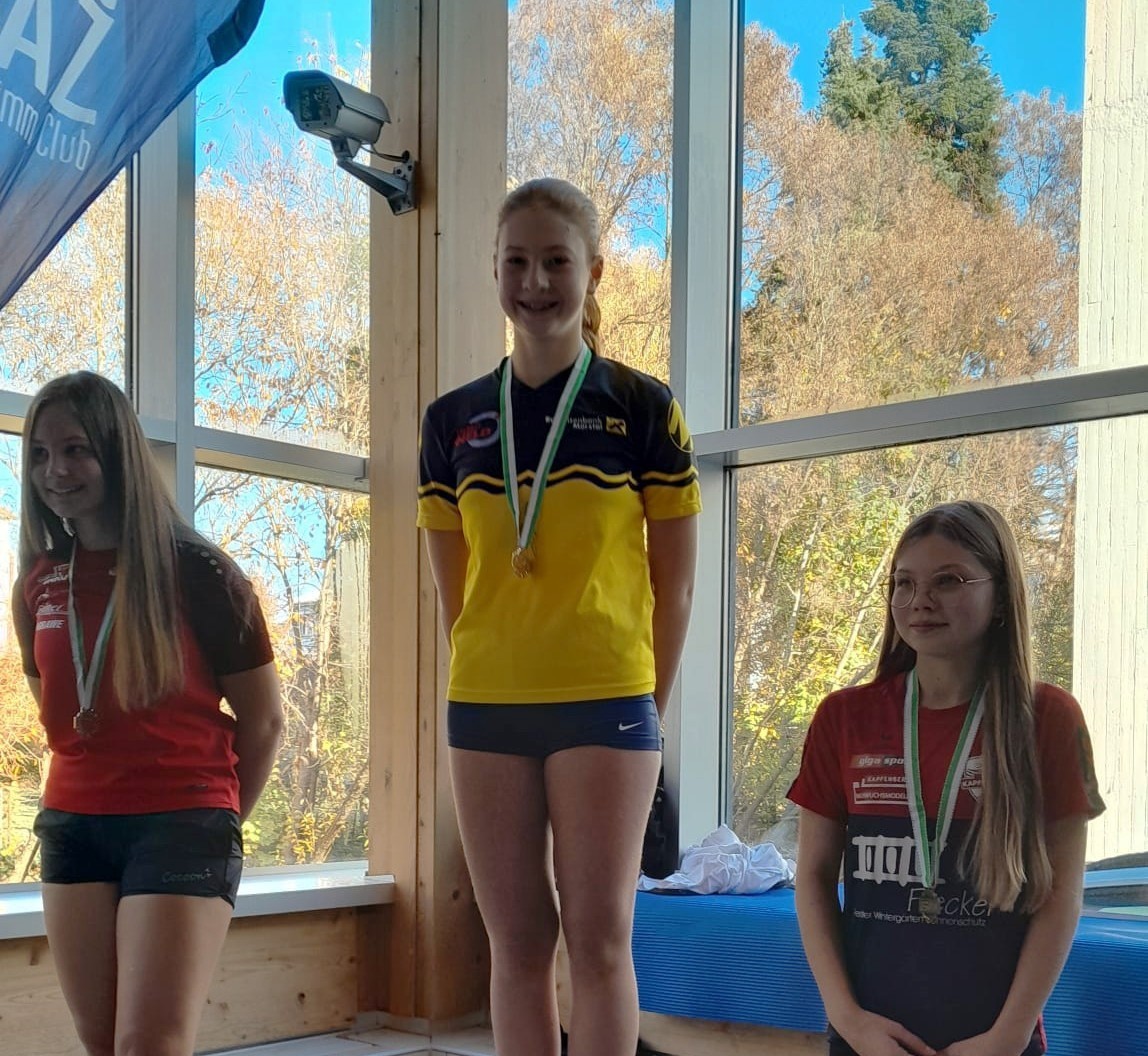 Die weiteren Platzierungen: Petra Pezer (2012) setzte sich heute unglücklich als 4. nur knapp neben das Podest, kann sich jedoch auch über eine deutliche Bestzeit freuen. Tamara Pezer (2008) holte sich bei den Juniorinnen den 8. Rang. Isabel Ninaus (2011) und Valentina Leodolter (2014) überraschten bei ihrer 400m - Primiäre mit tollen Schwimmzeiten, Isabel verbesserte sogar auch ihre 100m und 200m Bestmarke. Bei den Burschen platzierten sich Maximilian Weber und Moritz Jäger (beide 2012) im guten Mittelfeld, und bringen die Erfahrung mit nach Hause, dass 400m nun ihre neue Lieblingsstrecke ist.